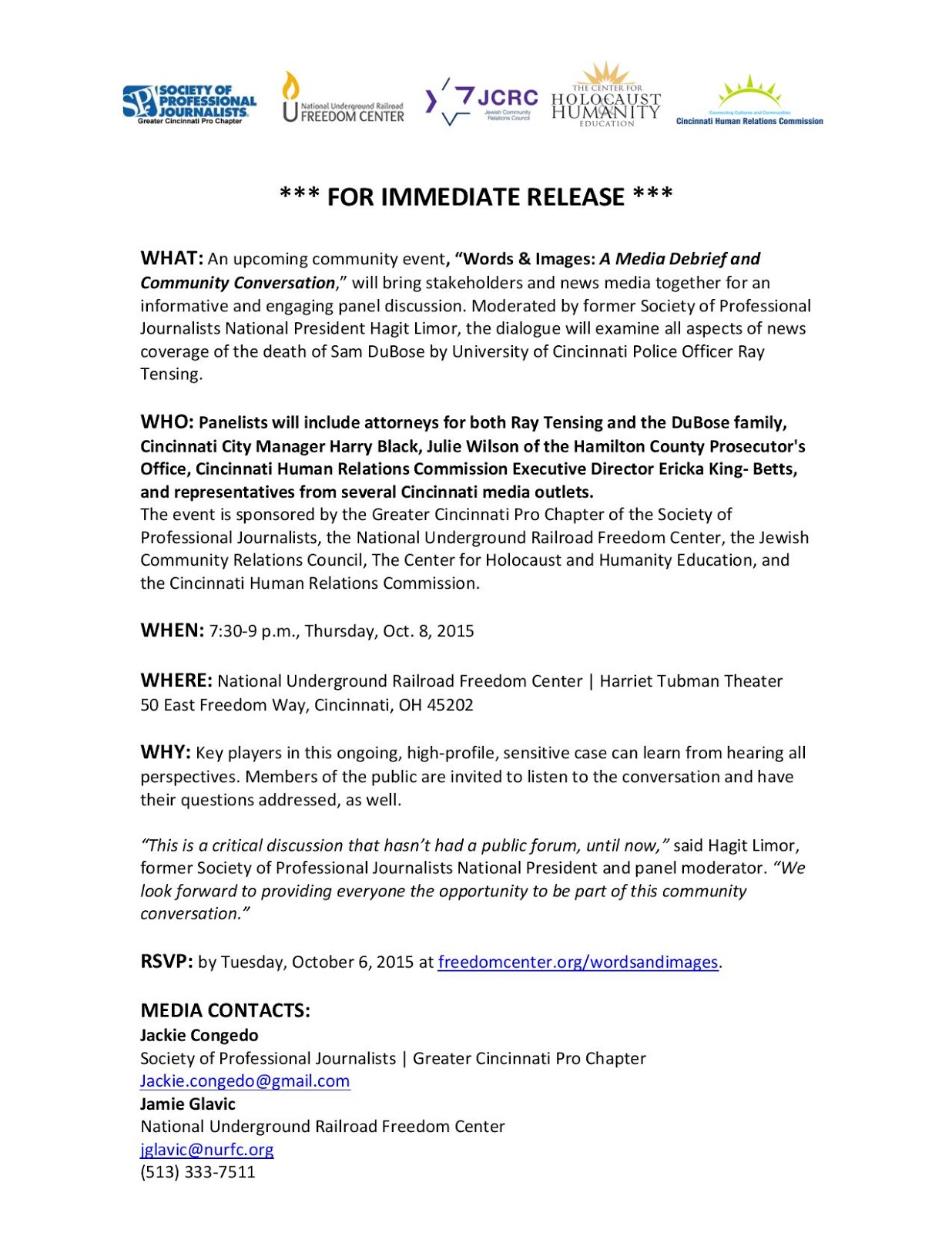 (10/8/15) for a panel discussion regarding the media coverage of the Tensing/DuBose