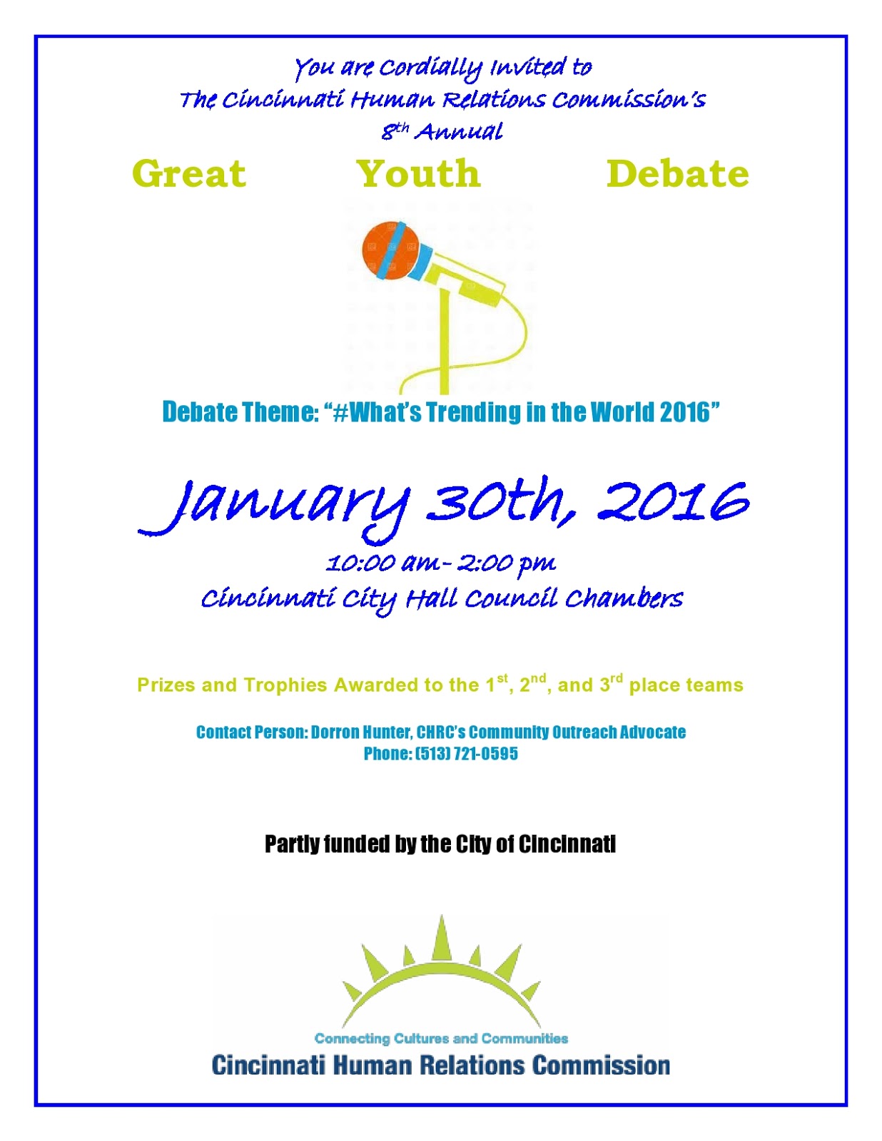 Looking forward to seeing you at CHRC's 2016 Great Youth Debate, Saturday, January 30th, 10am-2pm.