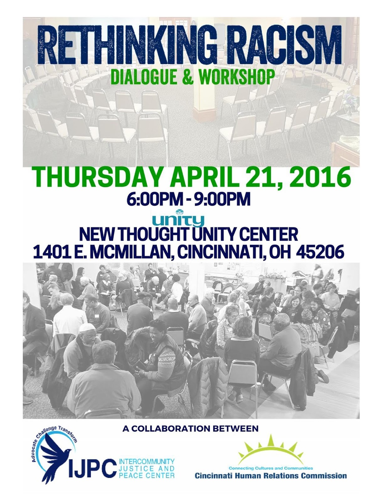 Nationwide, communities are galvanizing and demanding institutions to address racism locally. In this spirit, the Cincinnati Human Relations Commission and Intercommunity Justice and Peace Center partnered again to challenge organizations and individuals to make a commitment to addressing and ending racism, with an initiative entitled, “Rethinking Racism".